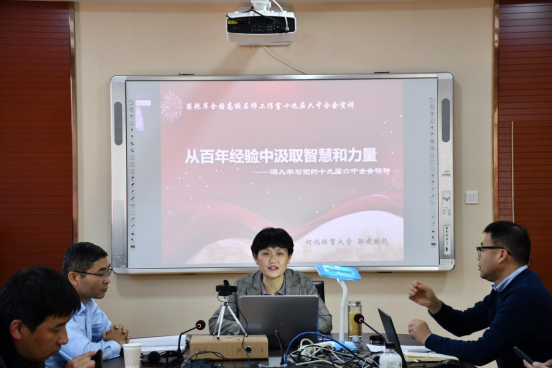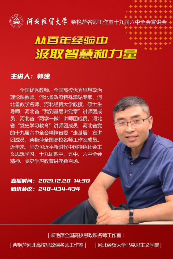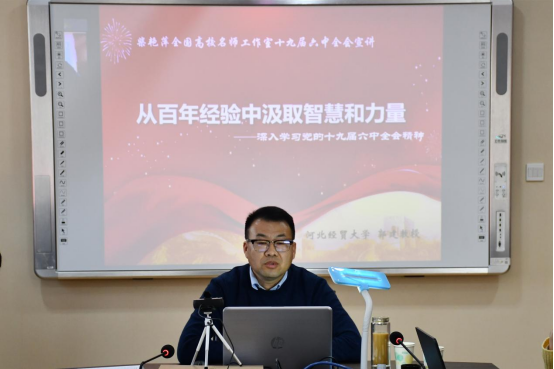 12月20日下午,柴艳萍全国高校思政课名师工作室、柴艳萍河北高校思政课名师工作室、太阳集团tyc539macau通过“线上线下”相结合的方式举办了十九届六中全会精神宣讲会,太阳集团tyc539macau马克思主义公司党委书记王青原教授主持,省内外师生共计550多名参会。