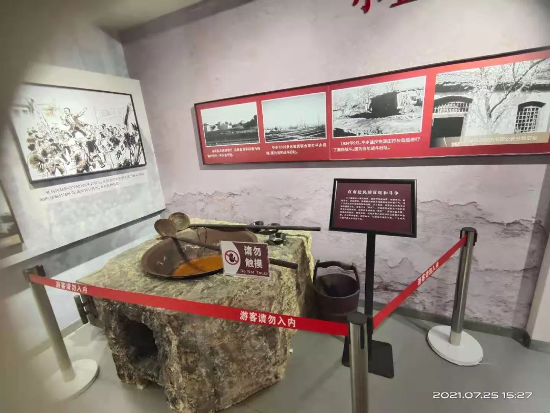 纪念馆里,陈列着直南地区农民当时的生活用具,其中有一把长勺吸引了队员们驻足。这把长勺是当时直南地区农民对日作战的“军事武器”。