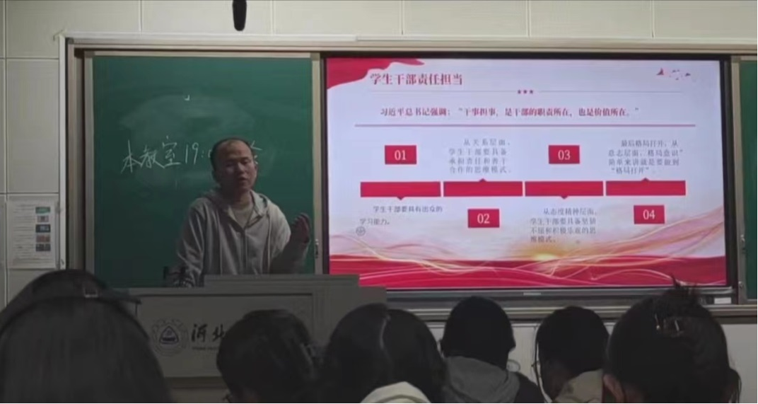3月31日晚,公司“践行二十大,学“习”讲故事”学习贯彻二十大精神系列活动第三期在北三教A104举行。系列活动第三期以“社会责任感”为主题,共有四位主讲人参与主讲,第三讲主讲人为2021级马克思主义理论专业研究生吴少朋,主讲题目为《习近平论青年的责任担当》。全院59名研究生参加了此次活动。