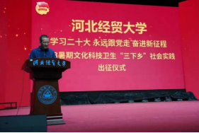 在出征仪式上,马鑫从社会实践活动的指导思想、安全意识、问题导向、调研态度等方面进行表态性发言。