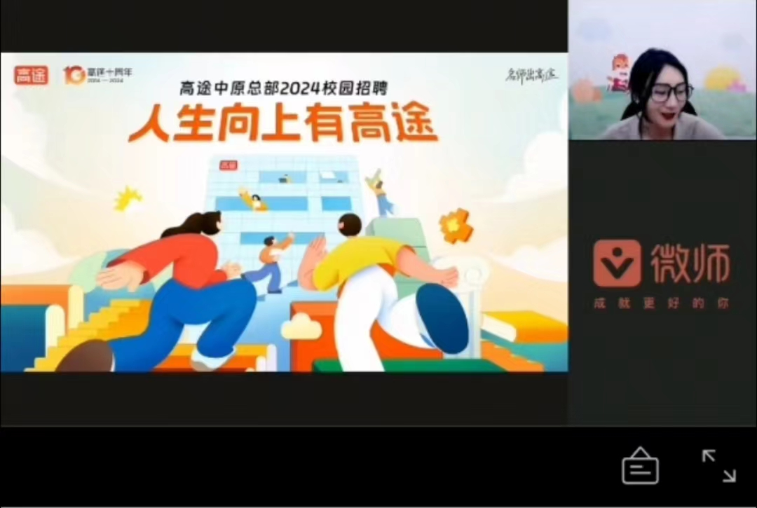 为进一步提升公司2024届毕业生的就业积极性,给毕业生提供更多就业选择,4月2日下午,公司联合高途中原总部举行了2024春季校园线上宣讲会。