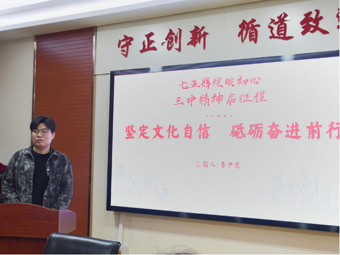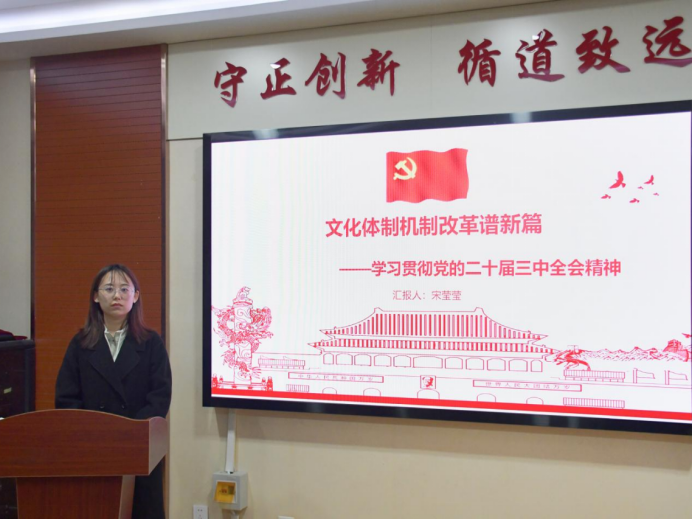 为深入学习贯彻落实党的二十届三中全会精神,11月1日,公司研究生会在二办203举办了第1期“七十五年辉煌映初心,三中全会精神启新程”学术沙龙系列活动。本期活动主题为“青春笔触绘华章,文化自信谱新篇”,本期活动由宋莹莹、唐绍仪、李少龙、张禧主讲,四十余名研究生参会聆听。