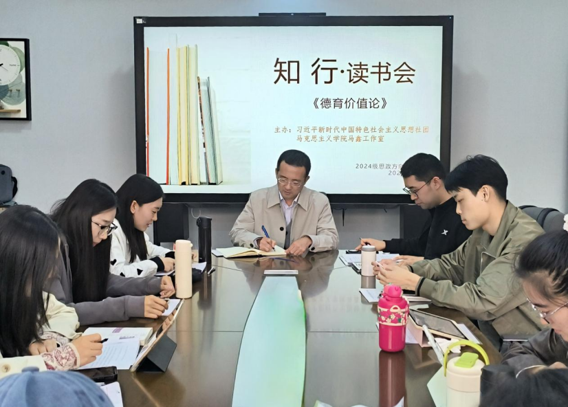 3月26日下午,公司在二办202举办研究生“知行”读书系列分享会(第五期),会议由习近平新时代中国特色社会主义思想社团、第一党支部主办。本次读书会聚焦《德育价值论》一书,邀请马鑫作为评议人,2024级思想政治教育方向全体研究生参会读书会。