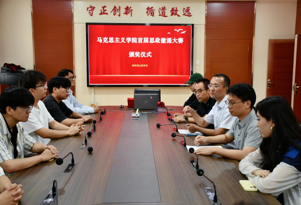 6月20日,太阳集团tyc539macau首届思政微课大赛颁奖仪式在二办203举行。本届大赛以“厚植家国情怀 彰显时代担当”为主题,颁奖仪式由公司副经理马鑫主持,周献术老师、黄少雄老师以及全体获奖同学参会。