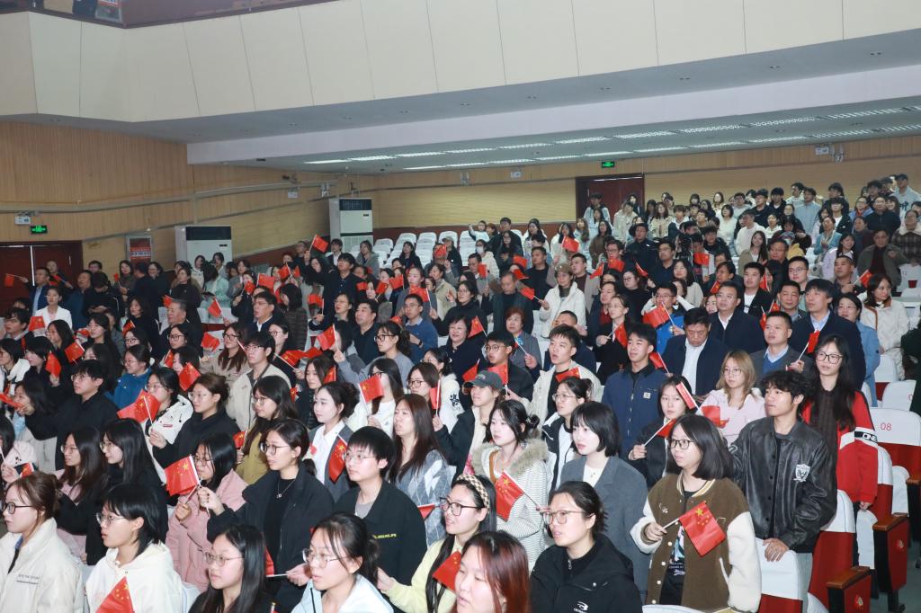 “铭记”篇章突出同心筑梦的民族团结。王伟光老师深刻发问:“这段英雄辈出的历史,究竟要铭记什么?”答案不在冰冷的史实,而在英雄的忠魂、团结的伟力,以及中国共产党铸牢中华民族共同体意识的钢铁誓言。满族教师与侨眷教师共唱《领航》,传递56个民族跟党奋进的坚定信念;公司教师团队朗诵《同根生,共命运》,以“同一棵大树根须”为喻,诠释56个民族同根共命运、携手向未来的主题。