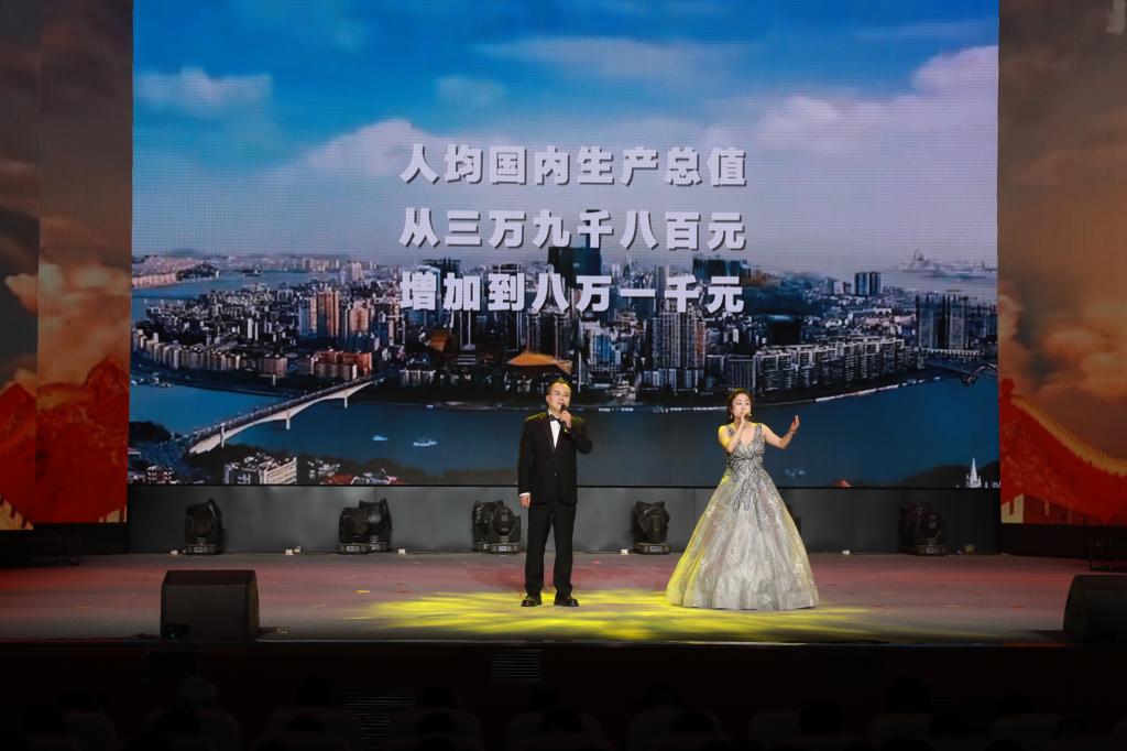 “胜利”篇章铭记胜利背后的民族奉献。梁若愚老师庄严讲述各族人民用鲜血换来的胜利荣光。古筝重奏《映山红主题随想曲》勾勒山河新貌;新疆班员工带来的歌舞《麦西来普跳起来》热情奔放,展现各族人民共庆胜利的喜悦;歌曲《铭记》以深情旋律凝聚起56个民族团结奋进的集体记忆。