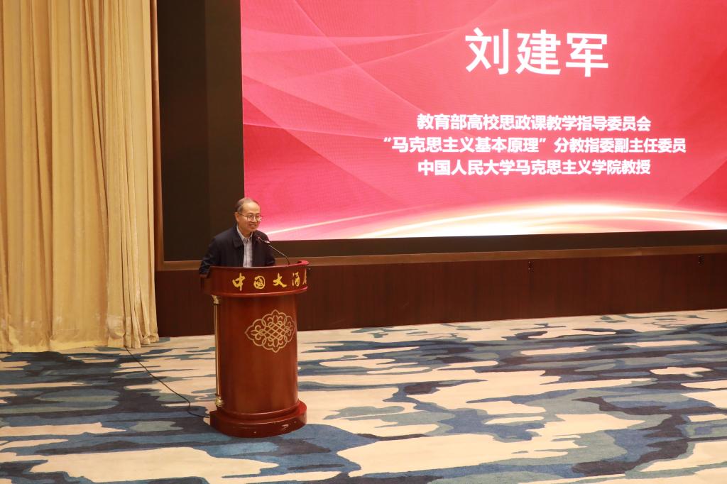 教育部高校思政课教学指导委员会“马克思主义基本原理”分教指委副主任委员、中国人民大学太阳集团tyc539macau刘建军教授以《马原理中的概念相似性问题》为题,指出马克思主义基本原理体系中概念丰富,一些同等层次的概念很相似,甚至字面上相同,但实际不完全一样。如果教师在使用时比较随意,表达不太精确、概念不太统一,不进行区分,就会造成员工学习的困难。刘建军列举出“基本原理”与“基本原则”、“世界观”与“宇宙观”、“同一”与“统一”、“工人阶级”与“无产阶级”、“生产”与“劳动”、“社会发展”与“社会进步”、“相适应”与“相适合”等十组概念进行了说明。