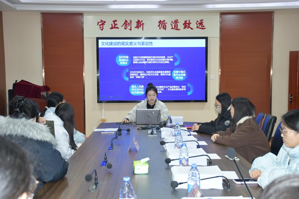 李宇佳同学围绕党的二十届四中全会关于文化建设部署,系统梳理了我国在文化领域取得的重大成就与其深远历史意义;李宗琦同学聚焦文化建设的战略定位,阐释了当前加强文化建设的现实必要性与时代紧迫性;张瑀涵同学结合具体实践,对如何推进新时代中国特色社会主义文化建设提出了自己的思考与建议。