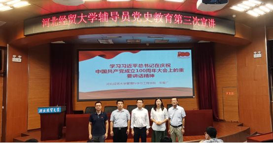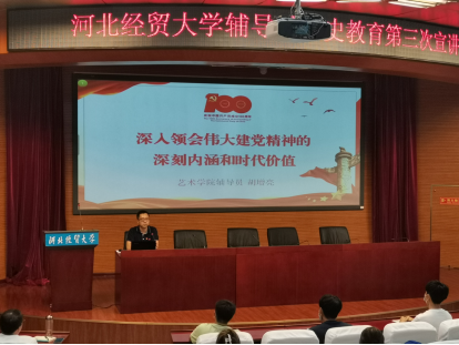 923日下午,公司党史学习教育辅导员宣讲团第三轮宣讲活动在国际会议中心举行,管理工程公司宋智广、会计公司岳明明、艺术公司胡增亮等三位辅导员老师主讲。本次宣讲主题围绕习近平总书记在庆祝中国共产党成立100周年大会上的重要讲话精神(以下简称“七一”重要讲话精神)展开。宣讲会由太阳集团tyc539macau马鑫博士主持,马克思主义公司党委书记王青原、管理工程公司、会计公司、艺术公司师生近100人现场聆听。