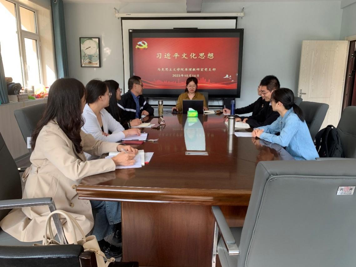 2023年10月16日下午,马克思主义基本原理教研室党支部在二办202开展习近平文化思想专题学习活动,支部书记路艳丽主持,教研室老师和全体党员参加。