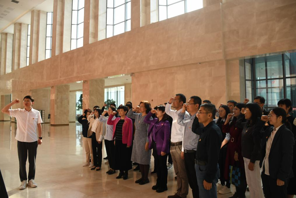 在纪念馆内,面对鲜红的党旗,党员们庄严宣誓,重温入党誓词,在铿锵有力的誓言中砥砺初心,进一步坚定理想信念。通过开展此次参观学习活动,全体教师加深了对石家庄解放历史的认识和了解,接受了一次深刻的党性锤炼和精神洗礼,进一步增强了开展党性教育的思想自觉和行动自觉。大家纷纷表示,将以此次活动为契机,传承红色历史,赓续红色血脉,把爱党爱国情怀转化为勇于担当,持续奋斗的精神动力,转化为立足岗位,奋发工作的实际行动,接续奋进新时代,为中国特色社会主义伟大事业贡献力量。(撰稿:齐旭硕、曲俞豪 摄影:齐旭硕、曲俞豪