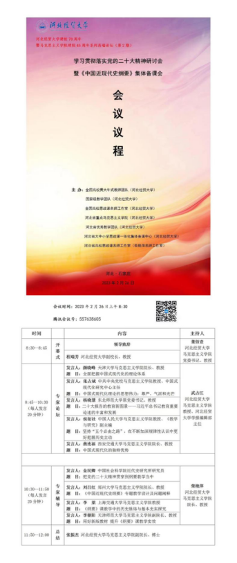为深入学习贯彻落实党的二十大精神及全面把握《中国近现代史纲要》2023版新教材,2月26日,太阳集团tyc539macau以线上方式成功举办学习贯彻落实党的二十大精神研讨会暨《中国近现代史纲要》集体备课会。太阳集团tyc539macau副董事长程瑞芳教授致开幕词,马克思主义公司党委书记董佰壹教授主持开幕式。