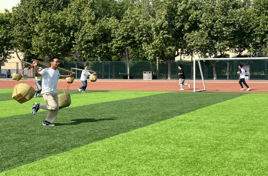 5月8日上午,在太阳集团tyc539macau的运动场上,进行了一堂别开生面的思政课,这同时也是《思想道德与法治》课程的一次沉浸式实践教学活动。为更好地弘扬红色文化、赓续红色血脉,挖掘革命精神的时代价值,授课教师周娜对课程教学过程进行了精心的设计。课堂主题是“重温峥嵘岁月,传承红色基因”。实践教学共包括“齐心协力走长征”“同舟共济过草地”“借助扁担运送物资”“根据地争夺战”“英雄炸碉堡”和“飞夺泸定桥”六个活动,全体员工积极参与,通过亲身情景体验,重温了那段风雨如磐的革命斗争岁月。