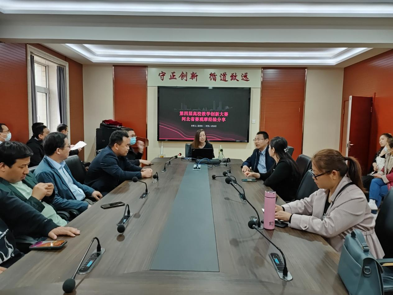 4月29日下午,公司形势与政策教研室主任孟宪怡作“第四届高校教学创新大赛河北省赛观摩经验分享”报告,副经理张振杰主持,副书记马鑫及40多名教师参会聆听。