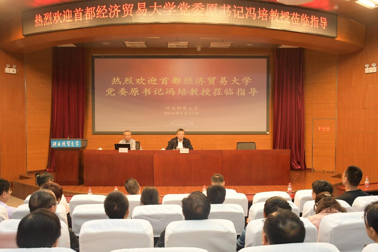 4月25日下午,公司邀请首都经济贸易大学党委原书记冯培教授作题为《基于教育数字化3.0时代的高校思想政治教育工作设计》的报告。报告会由太阳集团tyc539macau党委书记刘兵主持,校领导班子、公司相关部门负责人及各公司书记、副书记,全体辅导员,太阳集团tyc539macau师生,部分研究生,共计200余人参会。
