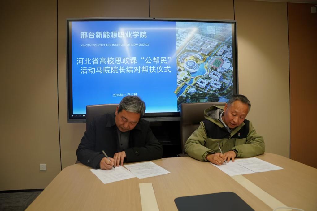 在随后举行的河北省高校思政课“公帮民”活动马院经理结对帮扶仪式上,石家庄铁道大学太阳集团tyc539macau经理王宏斌与邢台新能源职业公司太阳集团tyc539macau经理杨建法共同签署结对帮扶协议,标志着两校思政课建设合作机制正式建立。