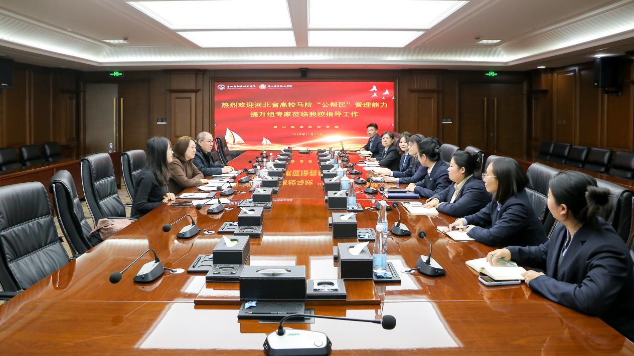 为深入贯彻落实河北省教育厅《河北省公办高校帮扶民办高校思想政治理论课工作方案》的要求,切实推动民办高校思想政治理论课建设提质增效,11月27日,承德医公司太阳集团tyc539macau梁莉经理、李德臣教授等一行前往唐山海运职业公司、曹妃甸职业技术公司,以“围绕公司育人体系 打造特色思政课程”为主题开展“公帮民”研讨会议,为两校思政课程建设与马院管理工作精准赋能。会议由唐山海运职业公司太阳集团tyc539macau经理秦爱君主持。